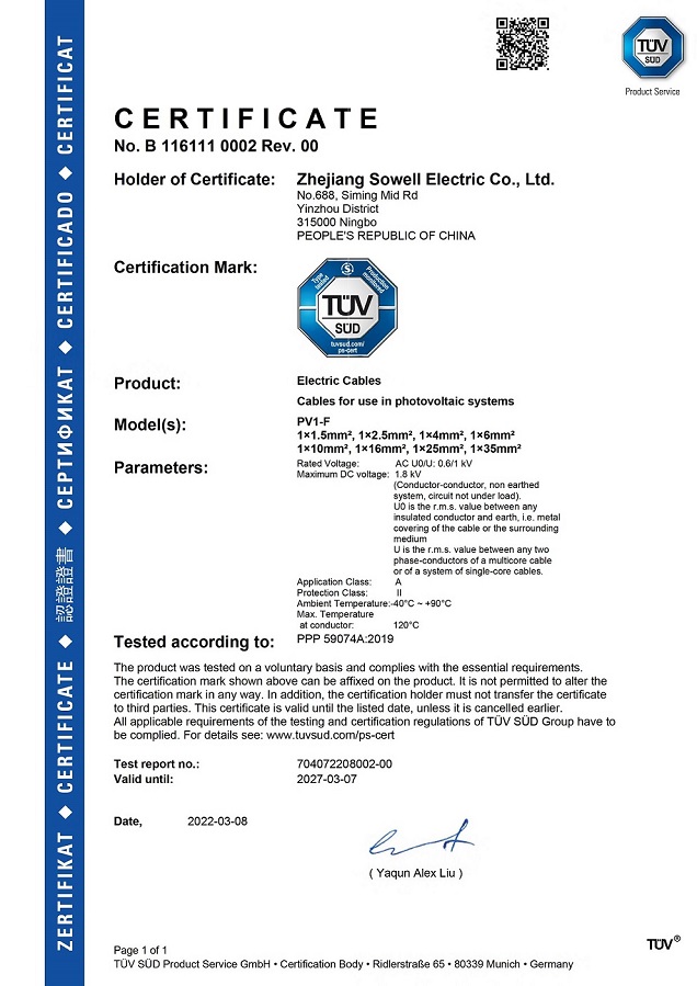 小微电气光伏电缆认证升级,实现了一个产品同时拥有多个标准的认证。
